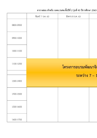 ตำรำงสอน ส ำหรับ นพท./นศพ.ชั้นปีที่ 2 รุ่นที่ 45 ปีกำรศึกษำ 2563 ภำคกำรศึกษำที่ 1 (ระหว่ำงวันที่ 7 – 13 ธ.ค. 63) (สัปดำห์ที่ 26)