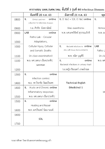 ตารางสอน นพท./นศพ.วพม. ชั้นปีที่ 3 รุ่นที่ 44 Infectious Diseases and Immunology 1 - 3 ระหว่างวันที่ 20 – 26 ก.ค. 63 (สัปดาห์ที่ 3)