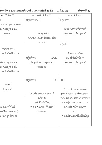 ตำรำงสอนรำยวิชำ กำรศึกษำวิชำแพทย์และวิชำชีพแพทย ส ำหรับ นพท./นศพ.ชั้นปีที่ 2 รุ่นที่ 45 ปีกำรศึกษำ 2563 ภำคกำรศึกษำที่ 1 (ระหว่ำงวันที่ 15 มิ.ย. – 19 มิ.ย. 63) (สัปดำห์ที่ 1)