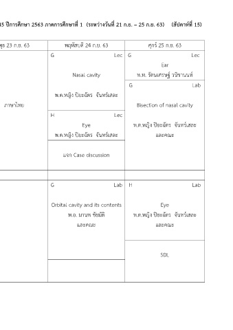 ตำรำงสอนรำยวิชำ ประสำทวิทยำศำสตร์กำรแพทย 1และ 2 ส ำหรับ นพท./นศพ.ชั้นปีที่ 2 รุ่นที่ 45 ปีกำรศึกษำ 2563 ภำคกำรศึกษำที่ 1 (ระหว่ำงวันที่ 21 ก.ย. – 25 ก.ย. 63) (สัปดำห์ที่ 15)