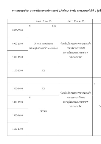 ตำรำงสอนรำยวิชำ ประสำทวิทยำศำสตร์กำรแพทย 2/จิตวิทยำ ส ำหรับ นพท./นศพ.ชั้นปีที่ 2 รนที่ 45 ปีกำรศึกษำ 2563 ภำคกำรศึกษำที่ 1 (ระหว่ำงวันที่ 12 ต.ค. – 16 ต.ค. 63) (สัปดำห์ที่ 18)