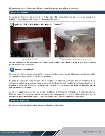 cuisinière. Le ventilateur a été mis en fonction lors de l’inspection. A