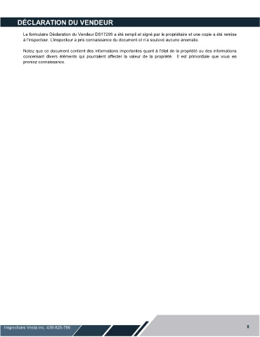 DÉCLARATION DU VENDEUR