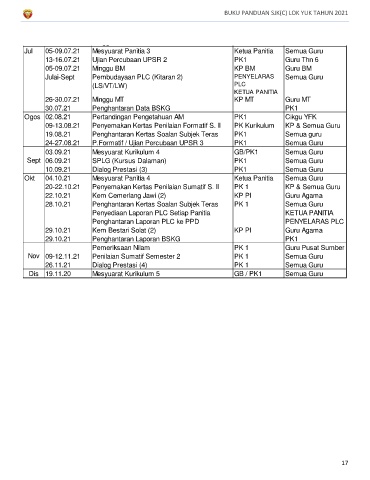 Julai-Sept Pembudayaan PLC (Kitaran 2) PENYELARAS Semua Guru