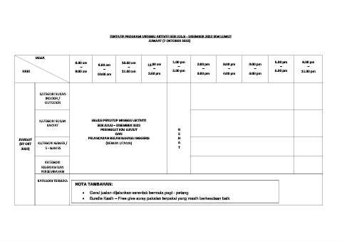 TENTATIF PROGRAM MINGGU AKTIVITI SESI JULAI - DISEMBER 2022 IKM LUMUT