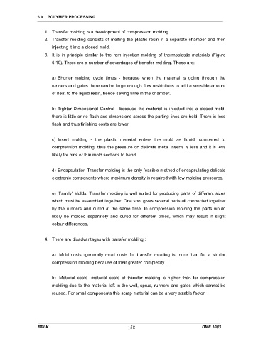 6.10). There are a number of advantages of transfer molding. These are: