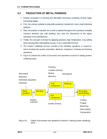 6. Figure 8.2 shows the outline of processes and operations involved in making powder