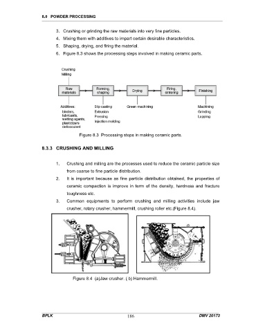 6. Figure 8.3 shows the processing steps involved in making ceramic parts.