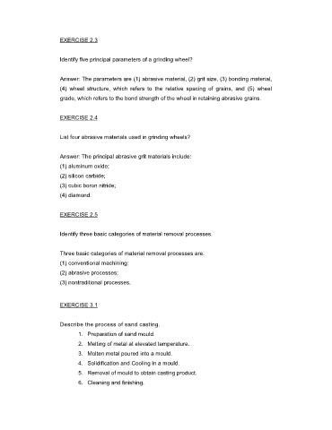 Answer: The parameters are (1) abrasive material, (2) grit size, (3) bonding material,