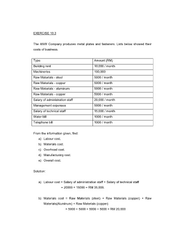 b) Materials cost = Raw Materials (steel) + Raw Materials (copper) + Raw