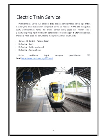bandar yang dikendalikan oleh pengendali kereta api nasional, KTMB. ETS merupakan