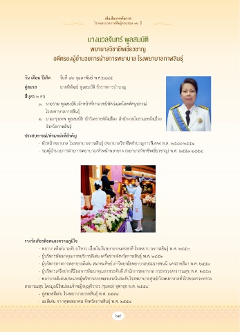 - ห้วหน�าพยาบาล โรงพยาบาลกาฬสินธุ์์� (พยาบาลวชื่าชื่ีพชื่านาญการพิเศัษ) พ.ศั. ๒๕๔๙-๒๕๕๑