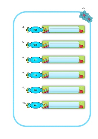๑๒ ๕. ดม ๖. ขน ๗. วง ๘. หก ๙. จบ ๑๐. รด