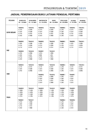 JADUAL PEMERIKSAAN BUKU LATIHAN PENGGAL PERTAMA