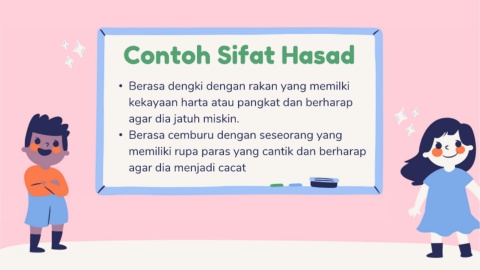 Contoh Sifat Hasad • Berasa dengki dengan rakan yang memilki kekayaan harta atau pangkat dan berharap agar dia jatuh miskin. • Berasa cemburu dengan seseorang yang memiliki rupa paras yang cantik dan berharap agar dia menjadi cacat