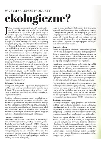 na każdym kroku. Dotyczy to nie tylko żywności ekolo- lanych, jak również dbanie o zdrowie zwierząt poprzez