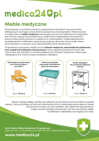 W sprzedaży posiadamy między innymi leżanki medyczne, stanowiska do pobierania