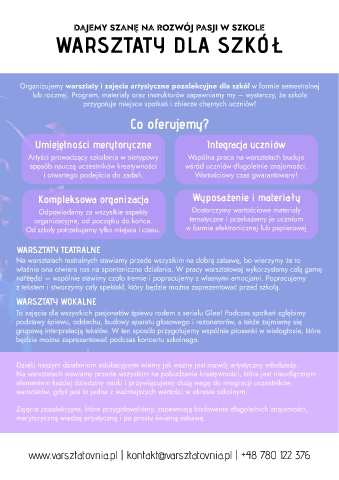warsztatów teatralnych i pisarskich. Działamy w ośmiu największych miastach w Polsce