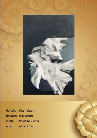 ชื่อศิลปิน ชิโนรส รุ่งสกุล ชื่อผลงาน แรงบันดาลใจ เทคนิค สีอะคริลิคบนผ้าใบ ขนาด 60 x 90 ซ.ม.