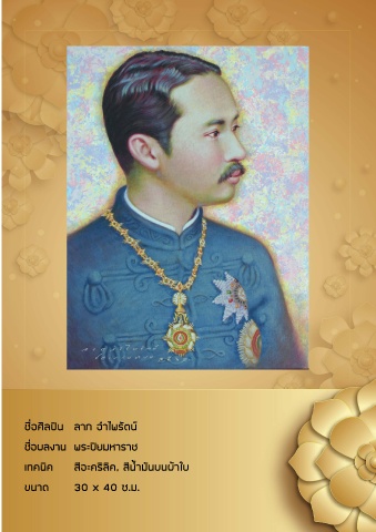 ชื่อศิลปิน ลาภ อำ ไพรัตน์ ชื่อผลงาน พระปิยมหาราช เทคนิค สีอะคริลิค, สีน้ำ มันบนผ้าใบ ขนาด 30 x 40 ซ.ม.