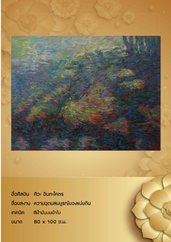 ชื่อศิลปิน ศิวะ อินทะโคตร ชื่อผลงาน ความอุดมสมบูรณ์ของแผ่นดิน เทคนิค สีน้ำ มันบนผ้าใบ ขนาด 80 x 100 ซ.ม.