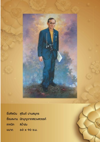 ชื่อศิลปิน สุจินต์ ปานสมุทร ชื่อผลงาน นักบุญจากสรวงสวรรค์ เทคนิค สีน้ำ มัน ขนาด 60 x 90 ซ.ม.