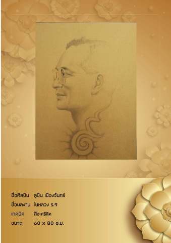 ชื่อศิลปิน สุบิน เมืองจันทร์ ชื่อผลงาน ในหลวง ร.9 เทคนิค สีอะคริลิค ขนาด 60 x 80 ซ.ม.