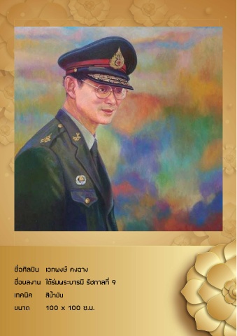 ชื่อศิลปิน เอกพงษ์ คงฉาง ชื่อผลงาน ใต้ร่มพระบารมี รัชกาลที่ 9 เทคนิค สีน้ำ มัน ขนาด 100 x 100 ซ.ม.