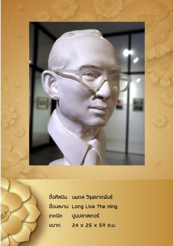 ชื่อศิลปิน นพดล วิรุฬชาตพันธ์ ชื่อผลงาน Long Live The King เทคนิค ปูนปลาสเตอร์ ขนาด 24 x 25 x 59 ซ.ม.