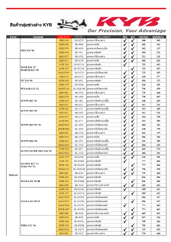คายรถ รุนรถยนต เบอร KYB 555 No. ประเภทสินคา ซาย ขวา ราคารวม ศูนยบริการ