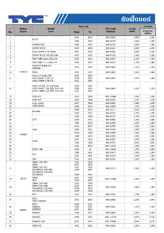 No. ยี ห้อรถ รุ่นรถ From To รหัสสินค้า ต่อชิ น ร้านอะไหล่