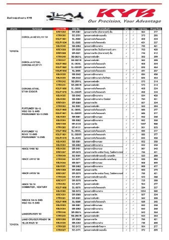 ค่ายรถ รุ่นรถยนต์ เบอร์ KYB 555 No. ประเภทสินค้า ซ้าย ขวา ราคารวม ร้านอะไหล่