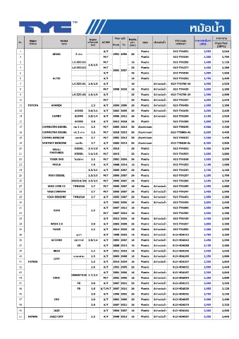 28 VIGO/INNOVA 2.7 M/T 2005 2007 26 Plastic มีฝาหม้อน า ํ 613-TYA347 ( 2,450) ( 1,960)