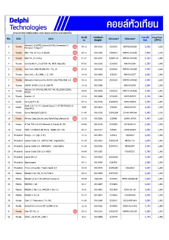 No. ยี ห้อ รุ่นรถ เทียบเบอร์ เทียบเบอร์