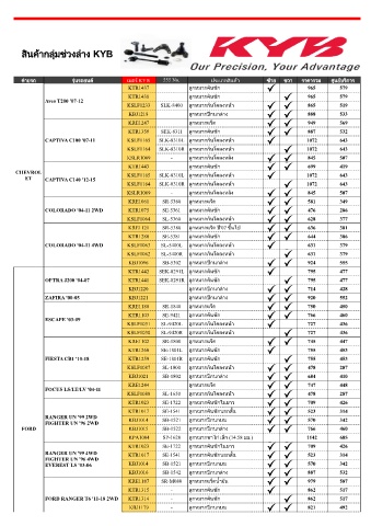 คายรถ รุนรถยนต เบอร KYB 555 No. ประเภทสินคา ซาย ขวา ราคารวม ศูนยบริการ