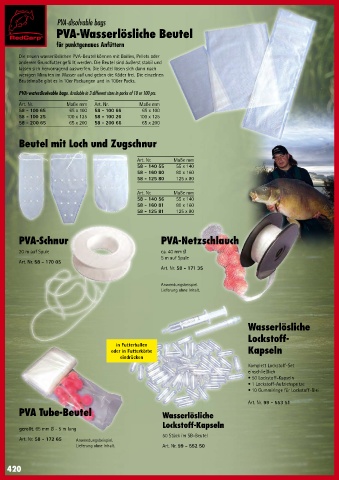 Die neuen wasserlöslichen PVA-Beutel können mit Boilies, Pellets oder