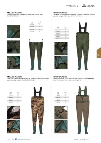 Light long nylon boots inished with a rubber sole. Available sizes: Light, nylon chest waders with rubber sole. Addiionally reinforced to protect