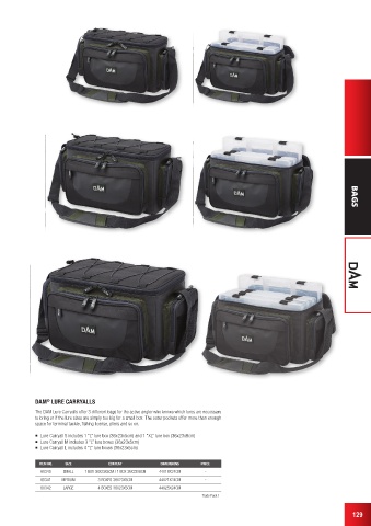 The DAM Lure Carryalls offer 3 different bags for the active angler who knows which lures are necessary