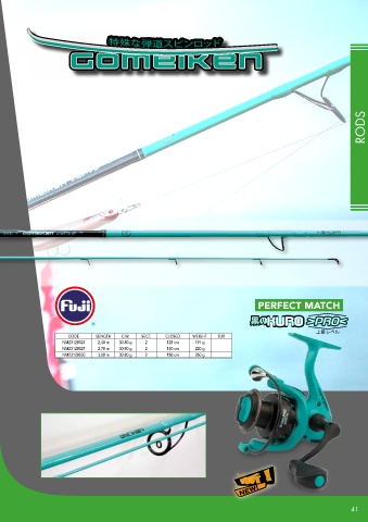 RODS PERFECT MATCH CODE LENGTH C.W. SECT. CLOSED WEIGHT €UR NM23128024 2,40 m 30-80 g 2 125 cm 191 g € 85,90 NM23128027 2.70 m 30-80 g 2 140 cm 220 g € 90,90 NM23128030 3.00 m 30-80 g 2 156 cm 260 g € 97,90 41