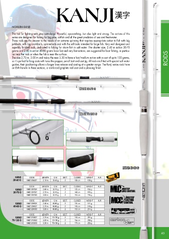 grams and 2.40 m action 40-80 grams have fast and very fast actions, are suggested for boat fishing, in particu-