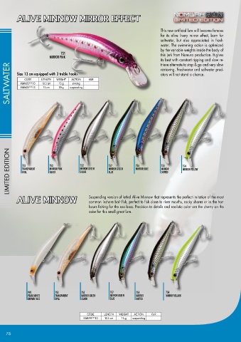 ALIVE MINNOW Suspending version of lethal Alive Minnow that represents the perfect imitation of the most