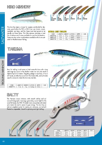 SALTWATER ades, good either for FW or SW: trout, sea bream, snook, SPECIAL LIGHT TROLLING 5 g ACTION 0.2-0.6 m € 5,80