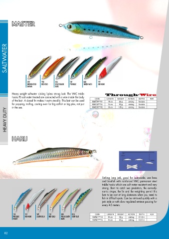 hooks PS salt water treated are connected with a wire inside the body CODE LENGTH WEIGHT ACTION DEPTH €UR
