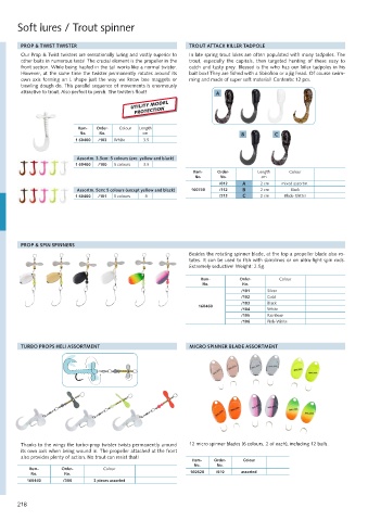 Thanks to the wings the turbo-prop twister twists permanently around 12 micro spinner blades (6 colours, 2 of each), including 12 bails.
