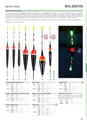 B caRp / pike-peRch Float with slideR e eel Float with iNNeR slideR h BatteRy cR 425 / 3v