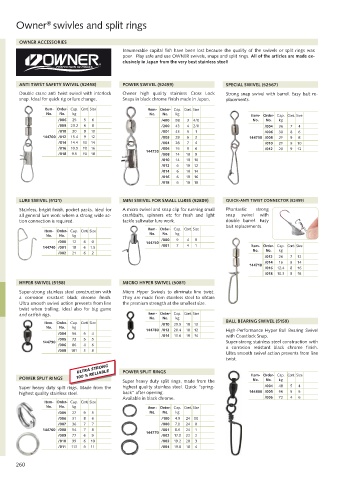poor. Play safe and use OWNER swivels, snaps and split rings. All of the articles are made ex-