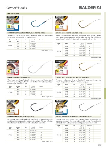 Perfect carp hooks: Multi hardened, forged steel, set point and a needle Catching large bream is an art. The OWNER hooks are non-reflective