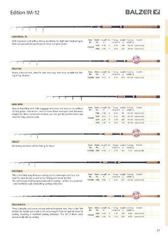 casting, resulting in excellent casting distances. The IM-12 Blank loads 112690 /390 3.90 9 1.31 184 8-20 natural cork