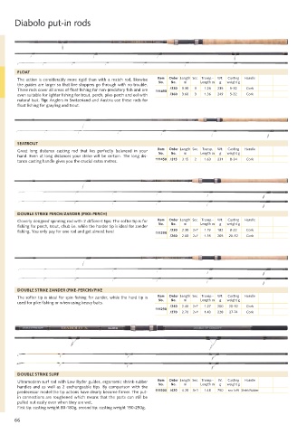 Cleverly designed spinning rod with 2 different tips: The softer tip is for item order Length Sec. Transp.- Wt. weight g Handle