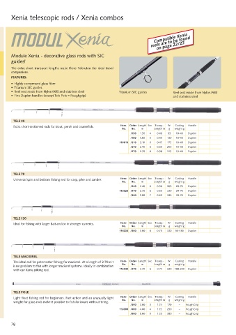 Extra short-sectioned rods for trout, perch and coarsefish. item- order- Length Sec. Transp.- W. Casting Handle